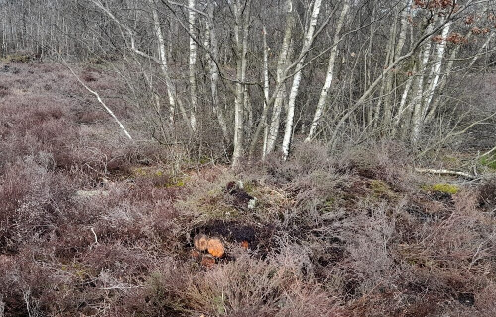 The Common would originally have been grazed by wild herbivores and was then grazed by cattle. But since cattle grazing stopped after the Second World War the heath became overgrown with invasive birch, willow and bracken. These invasive plants have been cut back, allowing the rich flora that was once characteristic of our heathlands to recover and improving the wood pasture habitat. Young trees have also been pollarded as part of the project – trees are cut above the reach of livestock and deer, and they resprout with lots of fresh growth. This increases their longevity and provides useful resources for people and wildlife.